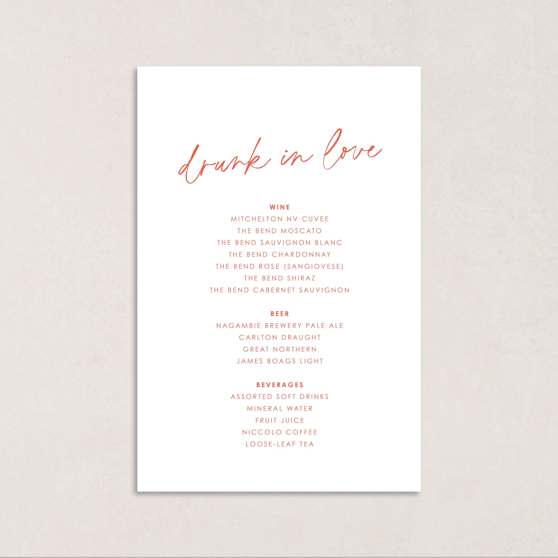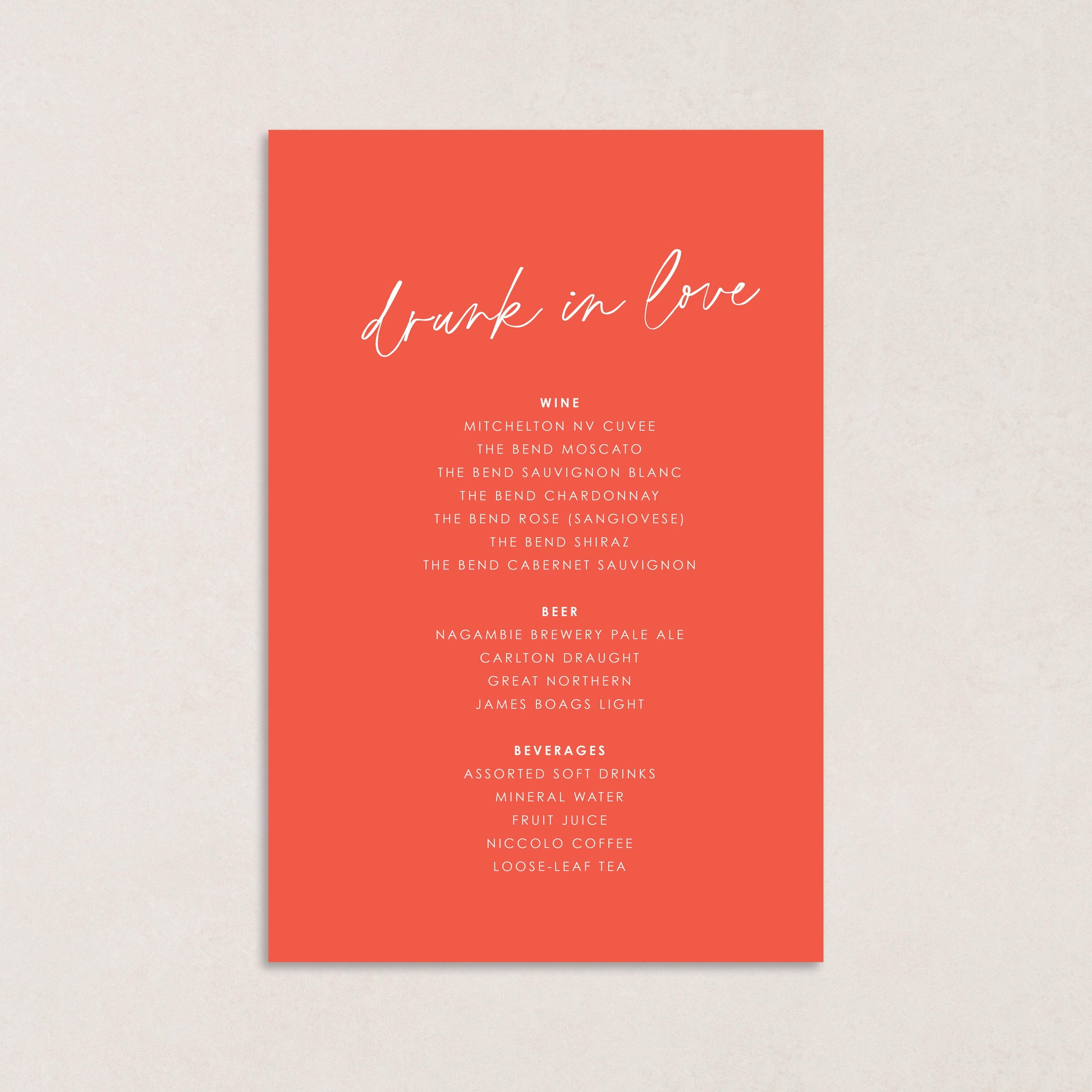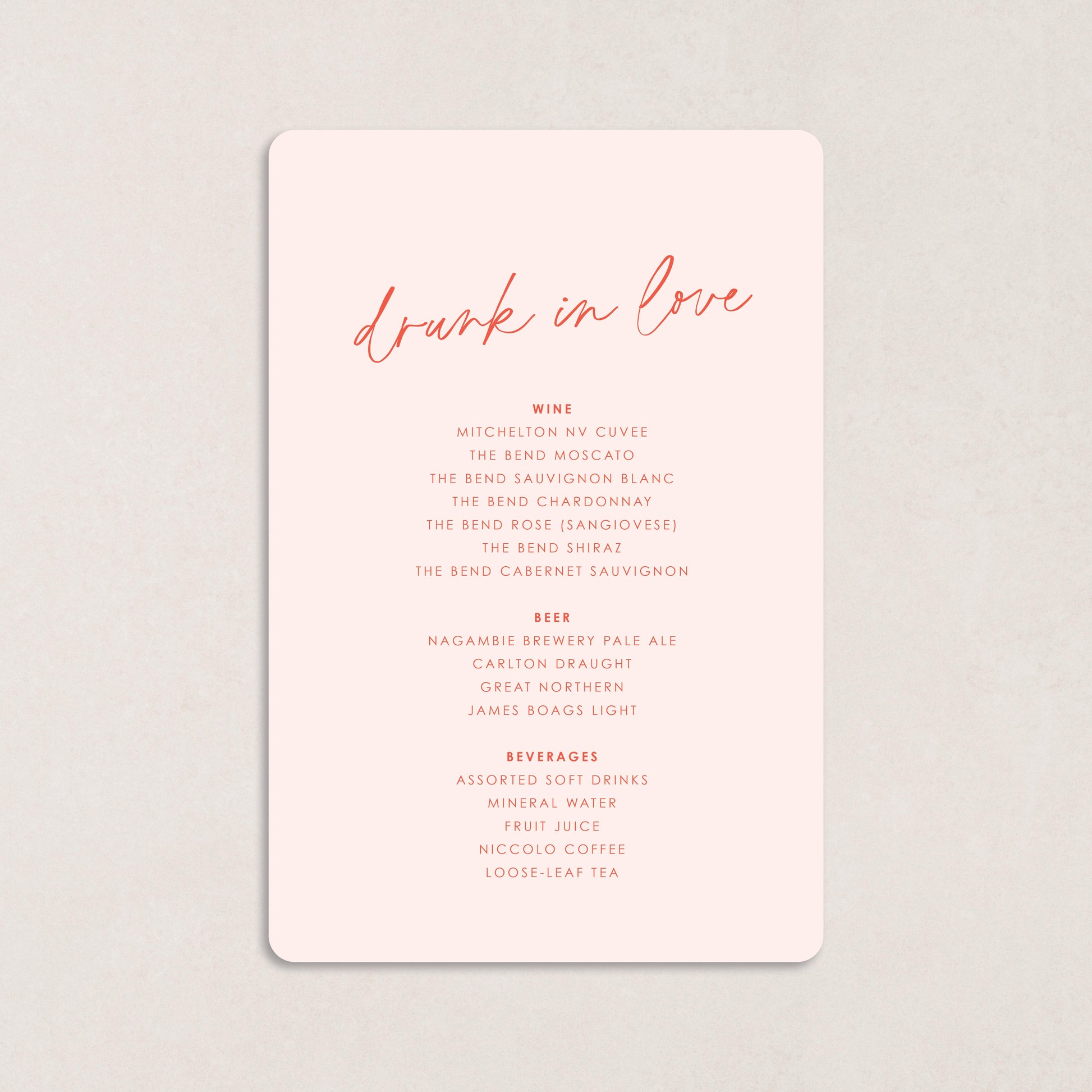 Honeymoon Drink Menus